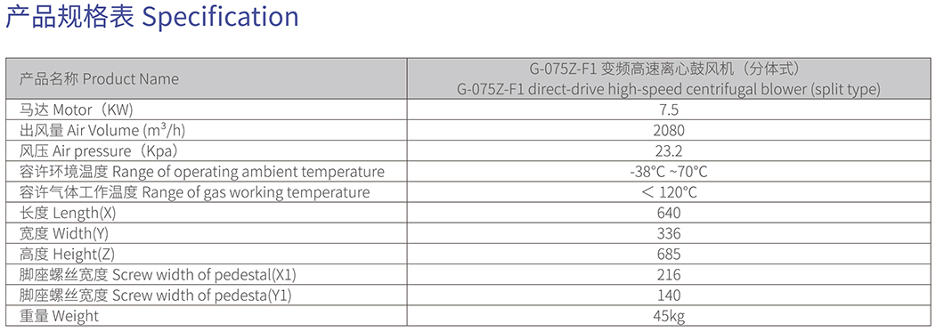 歐冠G-075Z-F1變頻高速離心鼓風(fēng)機(jī)(分體式)